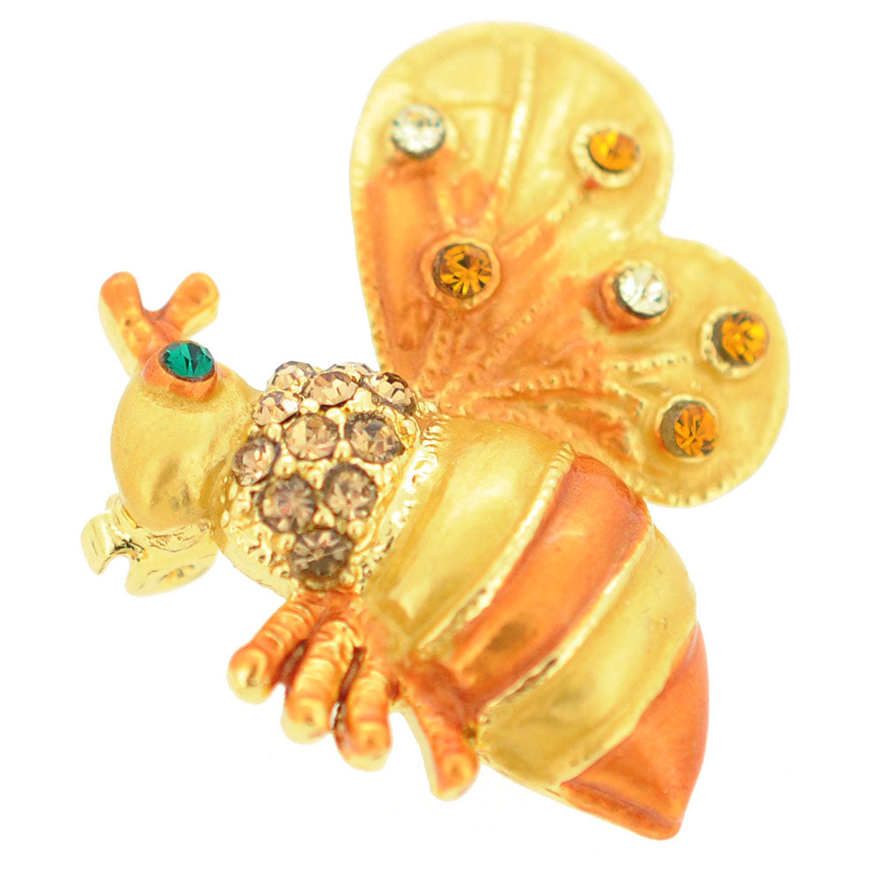 Golden Brown Bee Bug Swarovski Crystal Brooch Pin