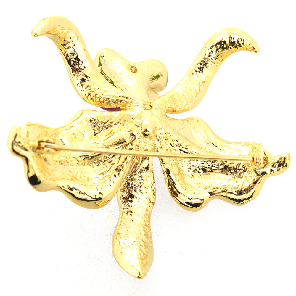 Fuchsia Pink Orchid Flower Swarovski Crystal Pin Brooch