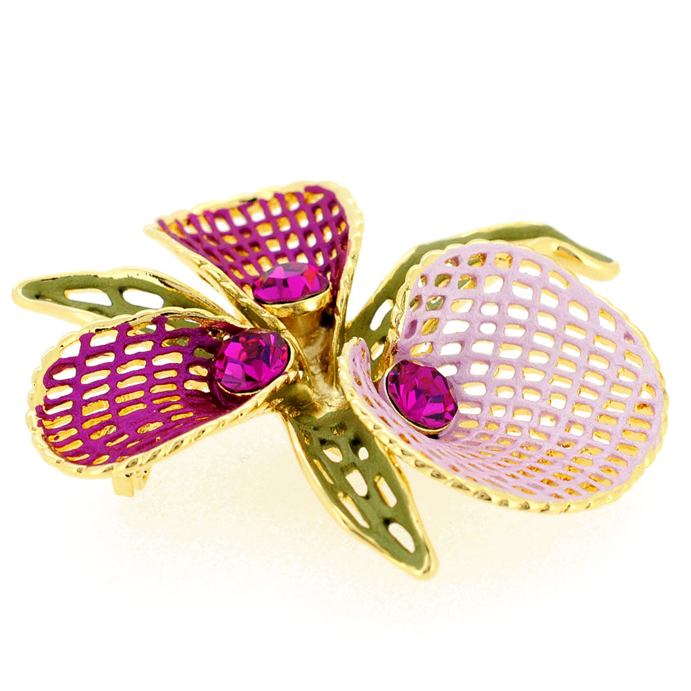 Pink Netted Orchid Swarovski Crystal Pin Brooch