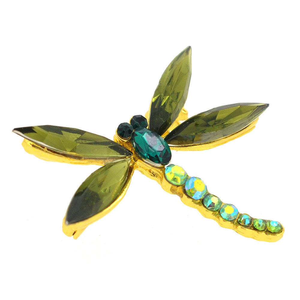 Green Dragonfly Crystal Pin Brooch