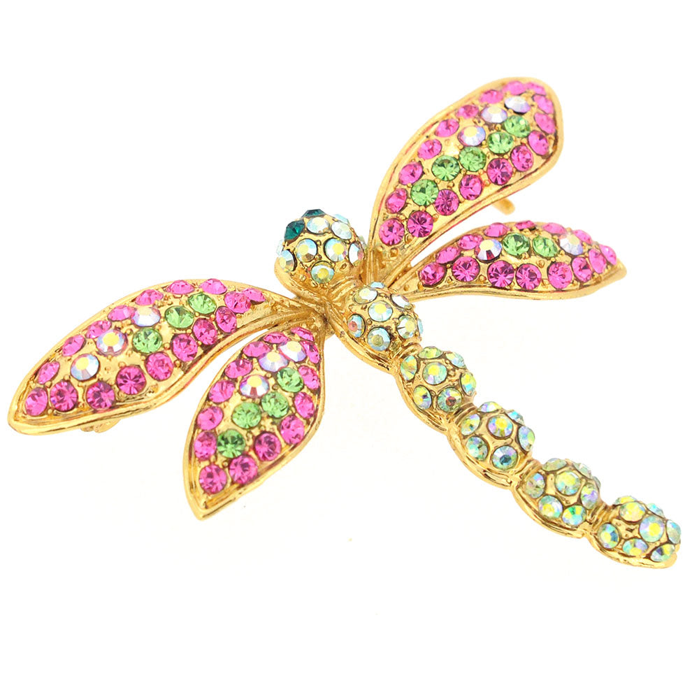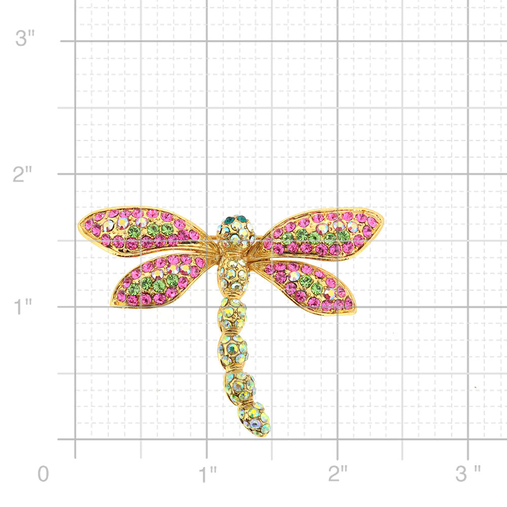 Pink Dragonfly Crystal Pin Brooch