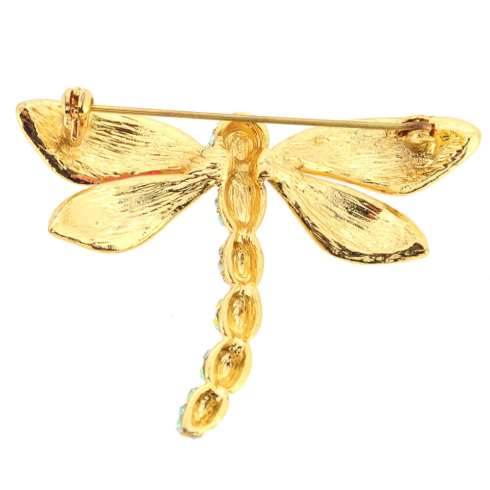 This gold-toned sparkly dragonfly with beautiful wings covered in emerald rose and aurore boreale Swarovski crystals will surely make a Spring day so much better! This classic dragonfly brooch has arore boreale crystals down the body and fastens securely with a metal clasp.