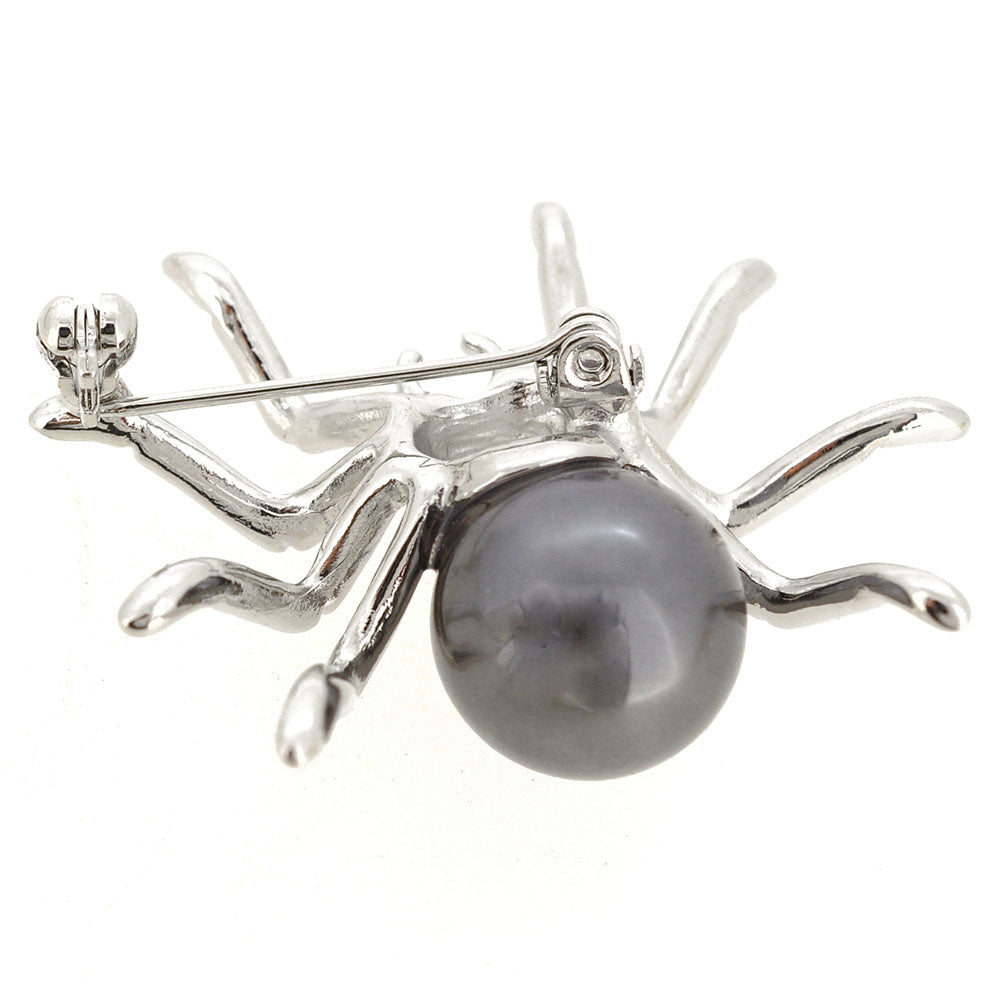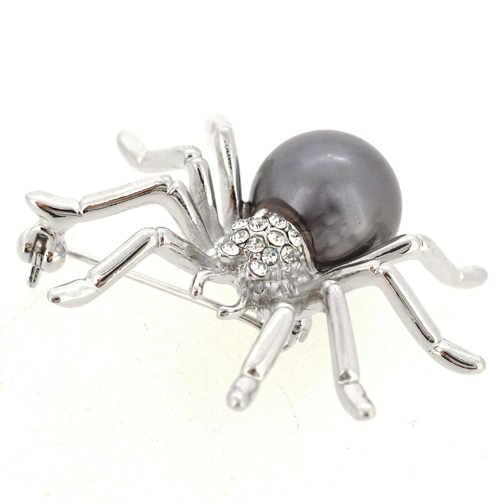 Don't step on the bug! This little spider has a swarovski crystal body finished in a silver tone with a gray fantasy pearl. Fastens securely with a metal clasp.