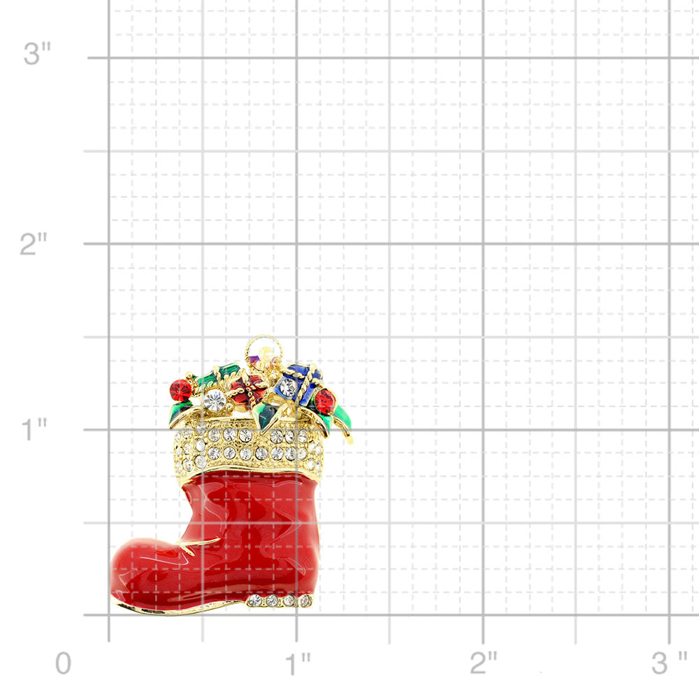Red Christmas Stocking Swarovski Crystal Pin Brooch