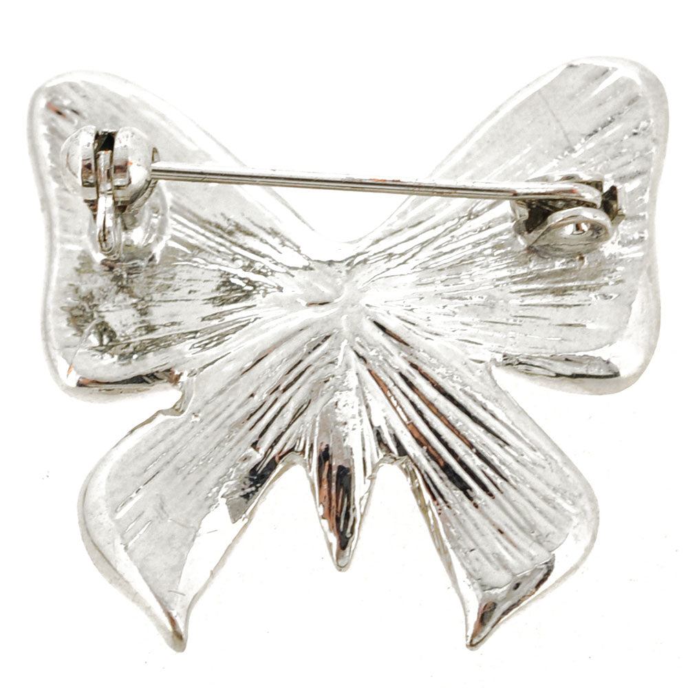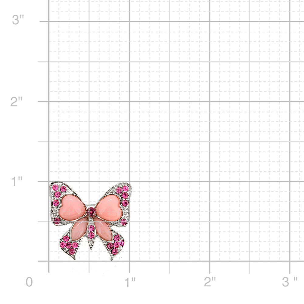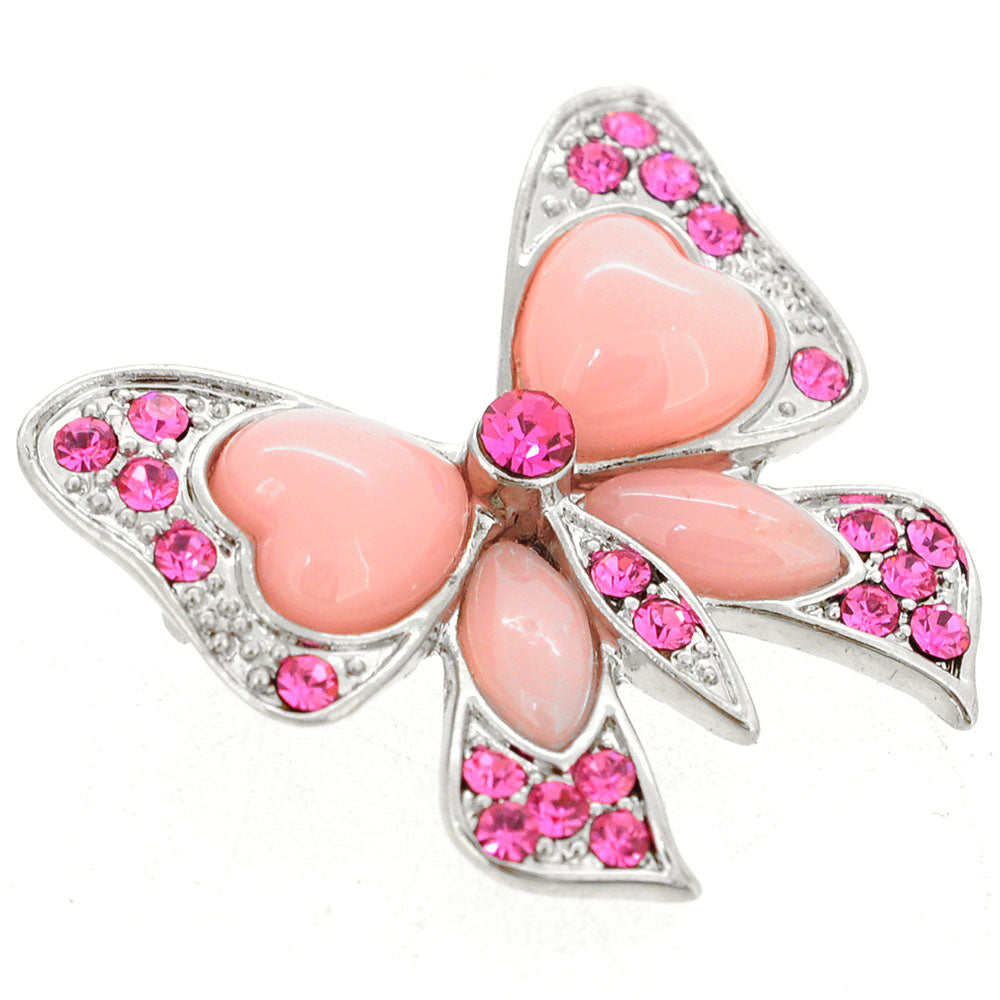 This adorable little butterfly is disguised as a bow! It is embellished with fuchsia swarovski crystals and light rose enamel in the wings. It is finished in a silver tone and can easily be worn with any outfit using the metal clasp on the back.